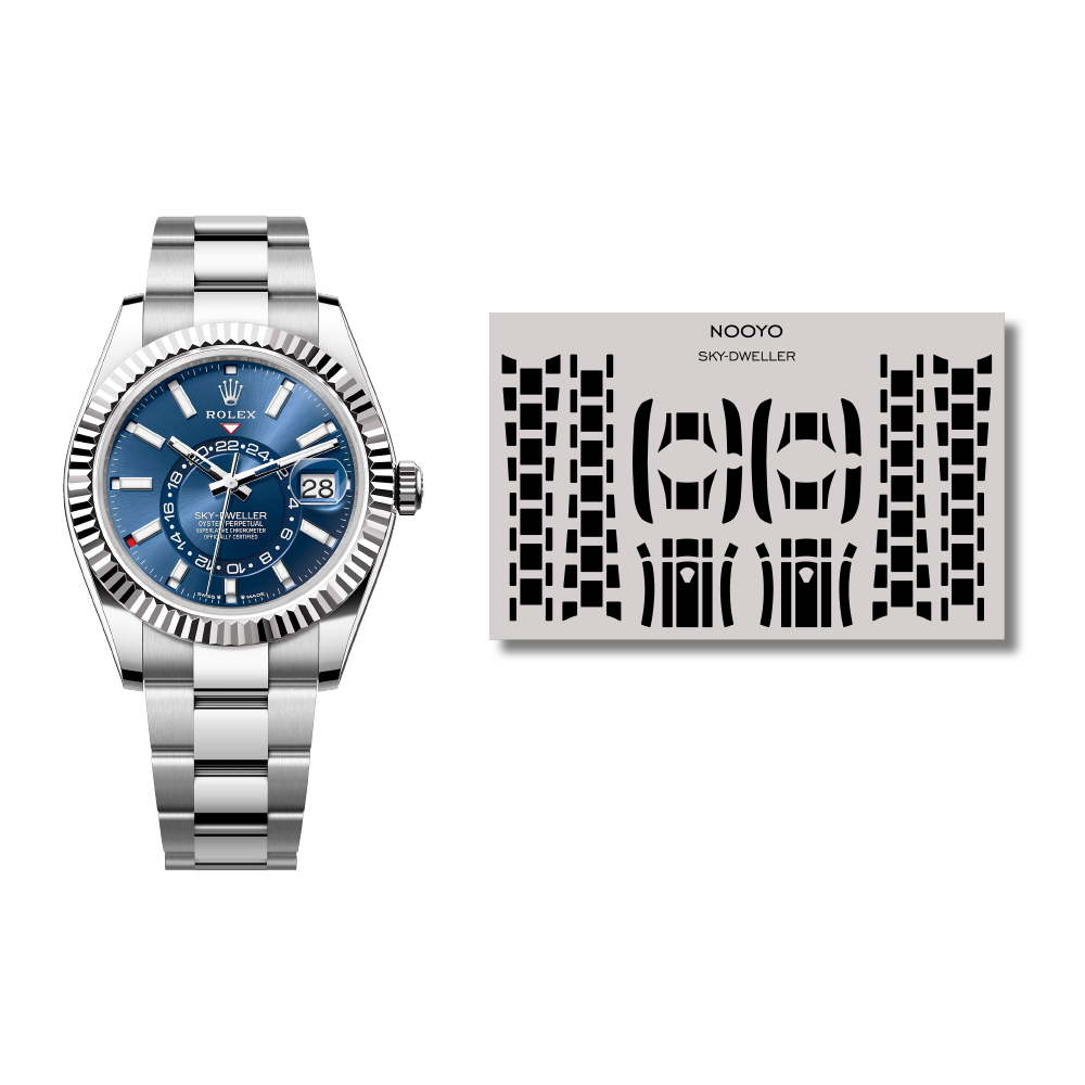 Die Folie passt für folgende Rolex Sky-Dweller Modelle Referenz: 326933, 326934, 336933, 336934.